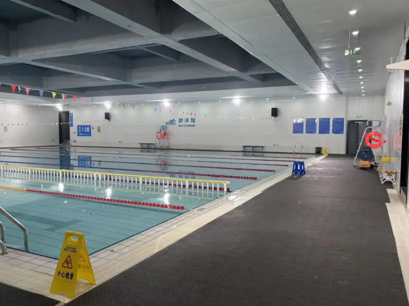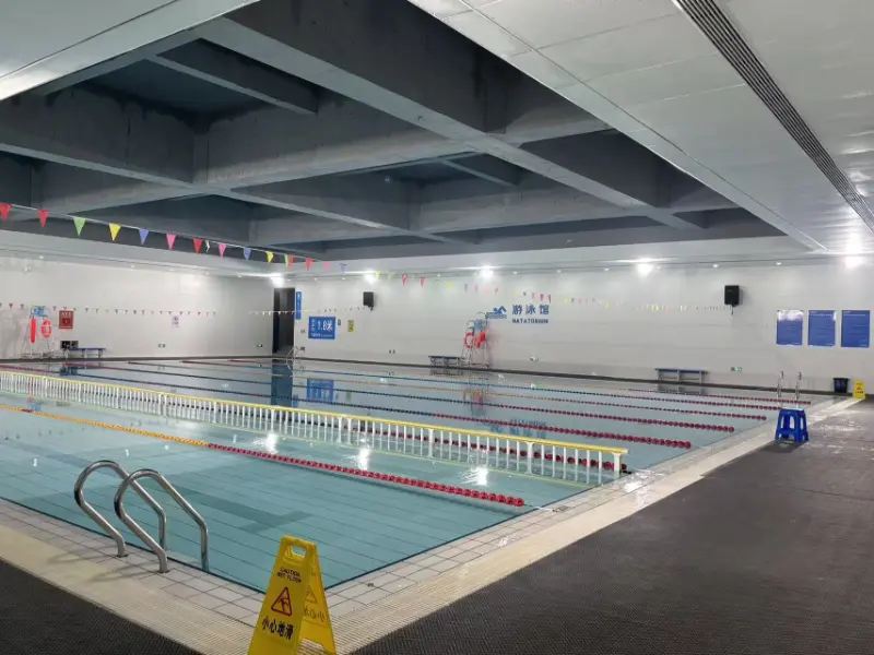 ດ້ານນອກຂອງສະລອຍນ້ໍາມີລະບົບແຜງໄຟຟ້າທີ່ມີໂລຫະ, ສ້າງສັນຜົນທີ່ຄ້າຍຄືກັບເສັ້ນໂຄ້ງແລະທິດທາງຂອງແສງແດດ, ການເພີ່ມແສງແດດ. " ໂຄງສ້າງຫລັງຄາຂອງຫລັງຄາຂອງພື້ນທີ່ສະລອຍນ້ໍາໃນລົ່ມໄດ້ຖືກເປີດເຜີຍ, ມີລໍາຕົ້ນສະແດງຄວາມລໍາບາກທີ່ຊັດເຈນຂອງເຫດຜົນທາງດ້ານໂຄງສ້າງແລະຄວາມຮູ້ສຶກຂອງສະຖານທີ່ຂອງສະຖານທີ່ກິລາ. ສະຖານທີ່ເຮືອນແມ່ນສອງຫນອງ: ສະລອຍນ້ໍາແລະສະລອຍນ້ໍາ. ສະລອຍນ້ໍາການແຂ່ງຂັນແມ່ນມີຄວາມຍາວ 50 ແມັດແລະກວ້າງ 25 ແມັດ, ມີ 8 ເລນ; ສະລອຍນ້ໍາການຝຶກອົບຮົມຍາວ 50 ແມັດແລະກວ້າງ 17 ແມັດ, ມີ 6 ເລນ. ທັງສອງສະລອຍນ້ໍາມີຄວາມເລິກ 2 ແມັດ.
